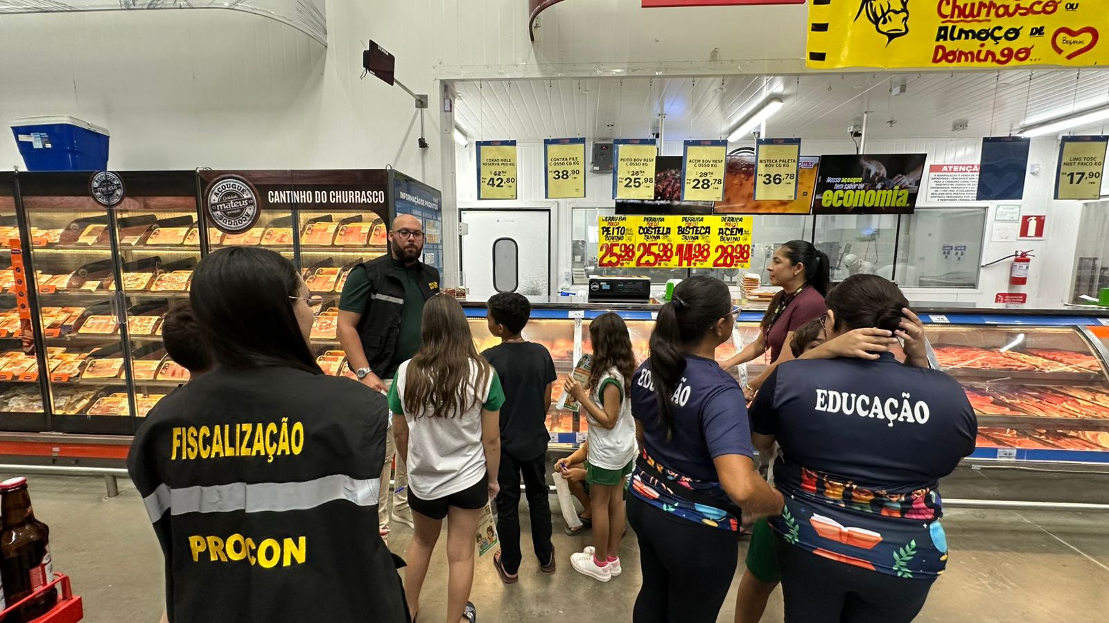 A iniciativa levou os estudantes para uma atividade prática em um supermercado do município, onde puderam vivenciar, de forma orientada, noções básicas sobre os direitos do consumidor. Acompanhados pela equipe de fiscalização do Procon, os alunos receberam um checklist educativo e participaram de uma experiência que uniu aprendizado e cidadania.
